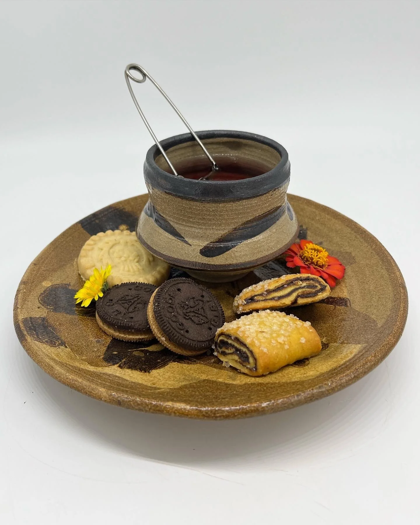 Sarah Kupersmith is a potter specializing in pinch pot, slab construction & wheel-thrown stoneware at her home studio in Pasadena California. Sarah's work is informed by folk pottery traditions, rooted in tending to the local soil. She makes clay slips, oxides & glaze formulations from her garden & surrounding land in the Valley. Pots are decorated using stamps made from found objects & flowers, honoring the unique properties of the terrain.